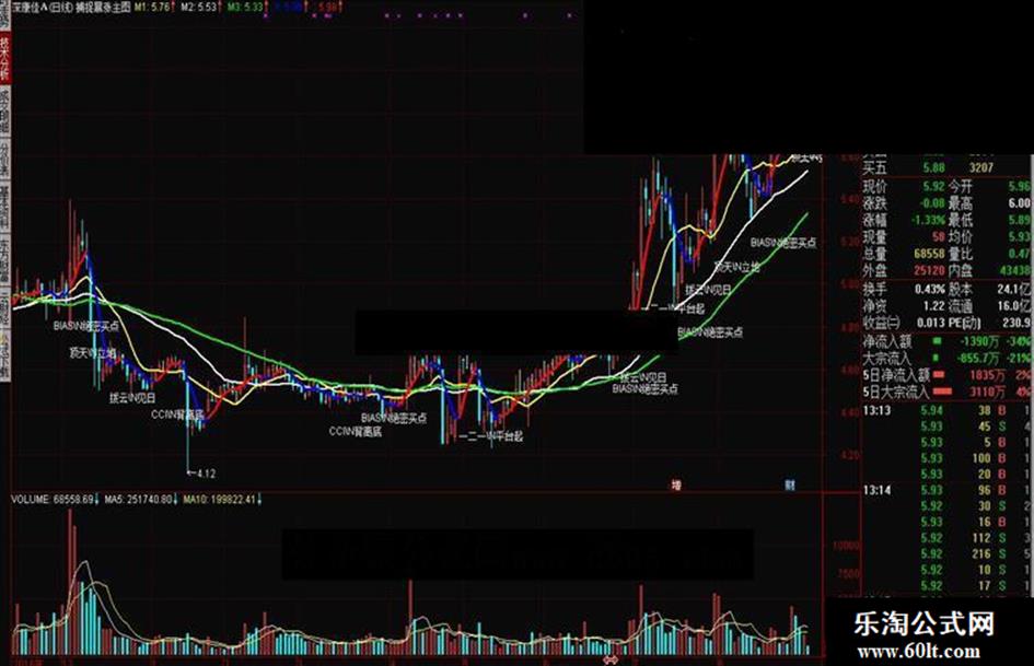DRAWTEXT(CROSS(主力,75) AND 散户<主力,67,'小心被套'),LINETHICK2,COLOR009900;