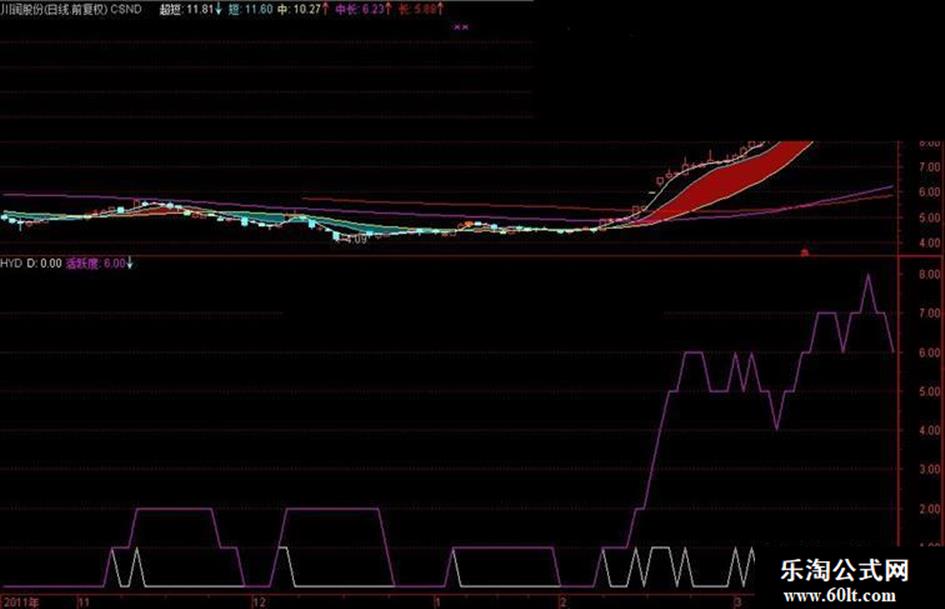 2、粉线则是在一定周期内活跃程度;连续上升,表示非常强势(数值>=2);下降表示股价下跌或不再强势;数值为零表示不活跃;