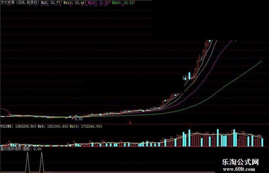 选股:DYNAINFO(4)>1 AND C>REF(C,1)AND LONGCROSS(价格趋势,资金趋势,2)AND 价格趋势<50;