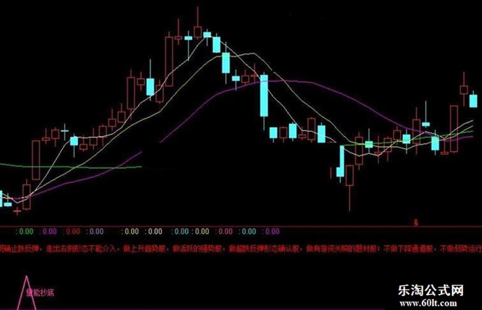 量能抄底:CROSS(OBV,OBV高) AND H<C高 AND C>趋势线 AND C>工作线 AND C<生命线 AND 量<50 AND 条件2;