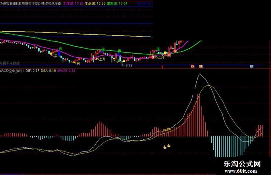 MACD空中加油是指DIF金叉DEA后,在0轴之上运行,DIF由上升逐渐向下,当DIF下降到DEA附近将近死叉但又未死叉或2线相互缠着, 当时机成熟时DIF却突然向上拐头向上,这种形态我们称之为“空中加油