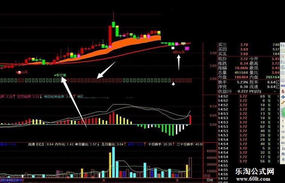 奉献理想专用:IF((CROSS(DIFF,DEA) AND DIFF<-0.1) ,L-0.2,DRAWNULL),COLORMAGENTA,LINETHICK9,CROSSDOT;