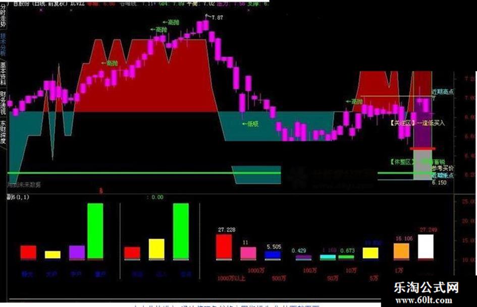 压力:IF(CURRBARSCOUNT<=N/30,GD-KJ*0.191,DRAWNULL),COLORFF00FF;{高点-分区高度*0.191=0.819线,NODRAW}