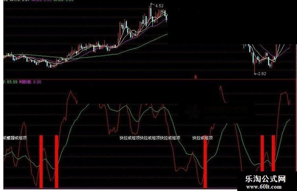 DRAWTEXT(CROSS(短趋势,长趋势)AND 长趋势>25 AND 长趋势>REF(长趋势,1),50,'快拉或短顶');