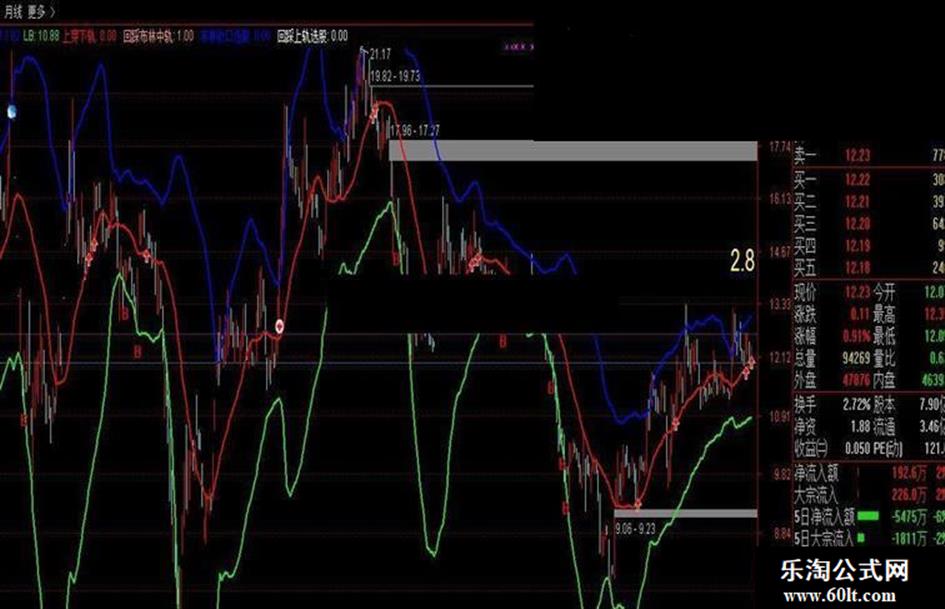 上穿轨道:=CROSS(C,BOLL) OR CROSS(C,UB);