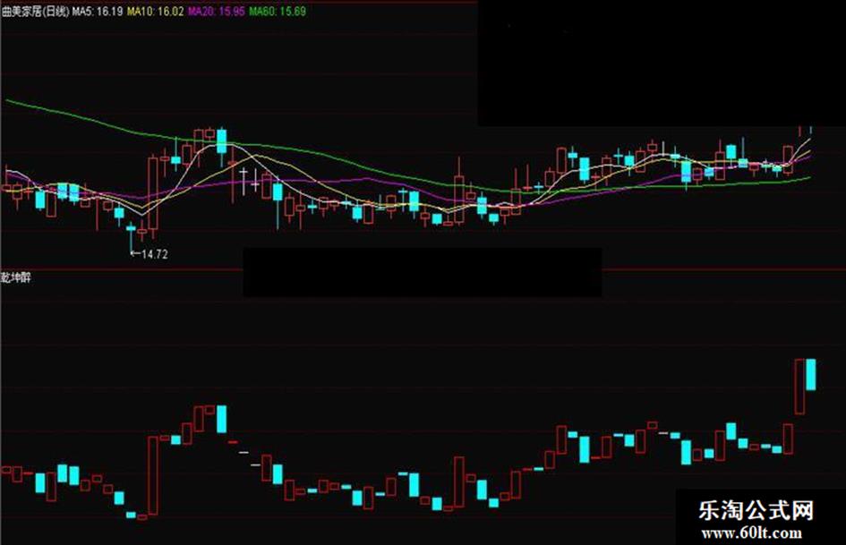 STICKLINE(L>REF(H,1)=0 AND H<REF(L,1)=0 AND C<O,C,O,3,0)COLORCYAN;