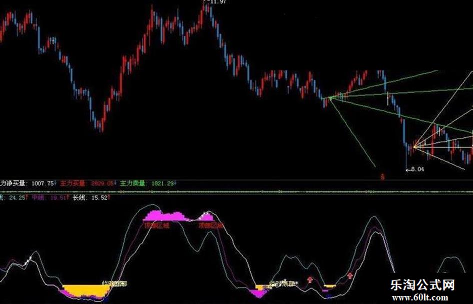 底: DRAWTEXT(CROSS(中线2,-90) AND (长线<中线 AND 长线>REF(长线,1)OR 短线<20 AND 中线<20 AND 长线<20),长线,'底'),COLORBB0000;