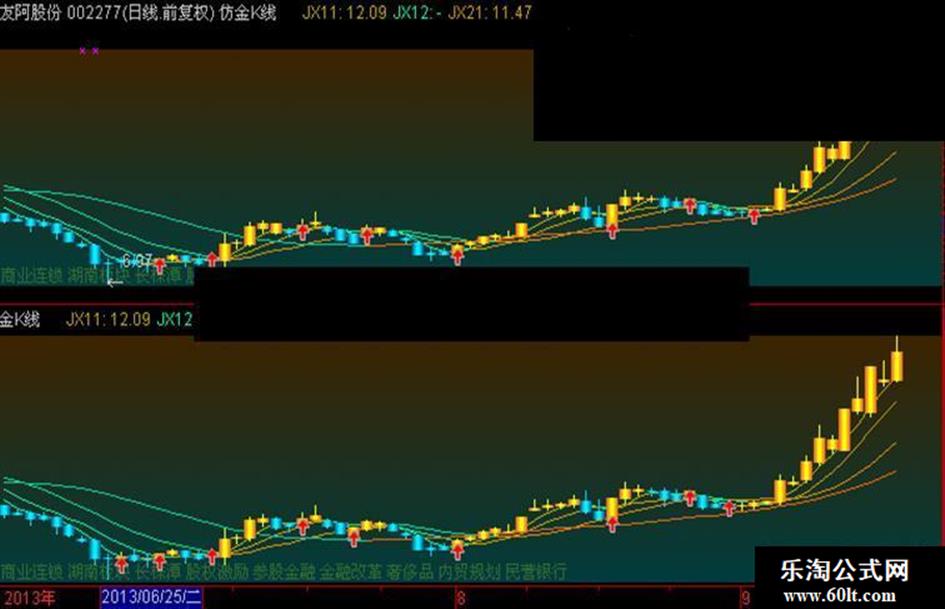 {特注,此公式为【仿金K线】,虽略有差异,差异不大,可以替用【金K线】}