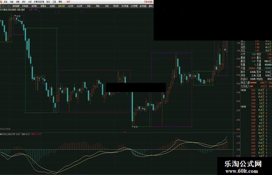 金叉区间最高价 最低价画红色框架 死叉区间画绿色框架 方便同学们根据MACD分析趋势。看似简单画线,还是有点难度。当然你是高手,一切都是浮云,请你绕道。我是半桶水,井底蛙,发帖是给喜欢研究 喜欢MACD的菜鸟的。源码提供,你有本事也多提供一些源码,少喷 干点实事。股市不是一个技术指标能搞定的。多参考一些技术指标,没有坏处。说不定哪一天你就成了。贵在坚持
