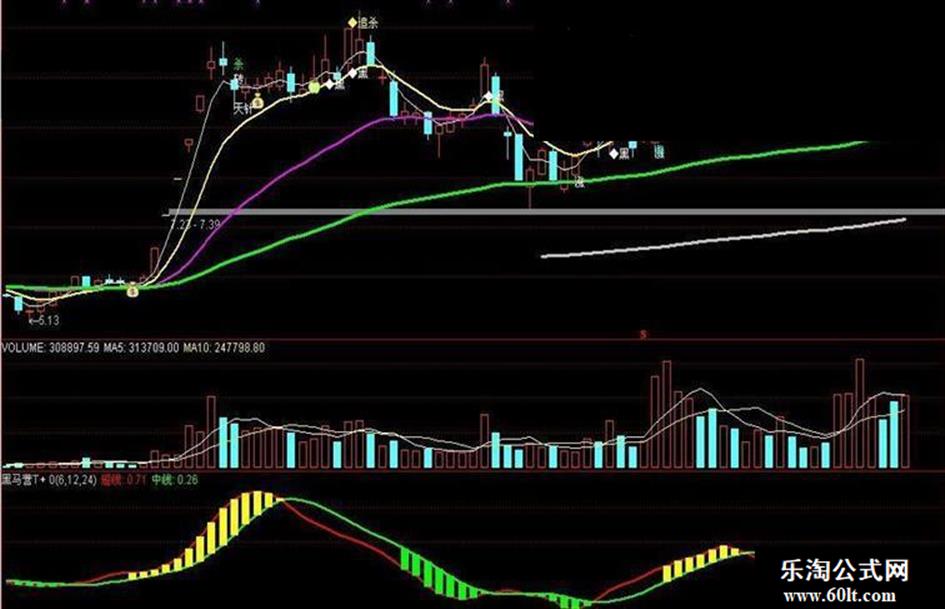 中线:MA(短线,7),COLORGREEN,LINETHICK2;