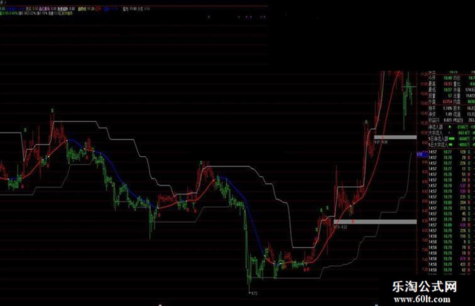 蓝降:IF(重心<趋势线,趋势线,DRAWNULL),COLORBLUE,LINETHICK2;