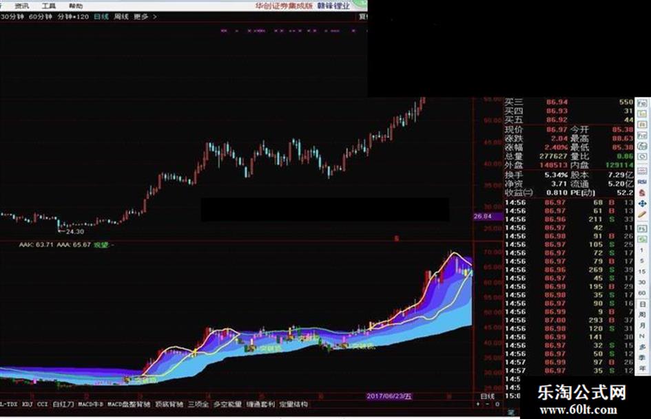 观望:IF(AAK=AAA,AAK,DRAWNULL),COLORGREEN,LINETHICK2;