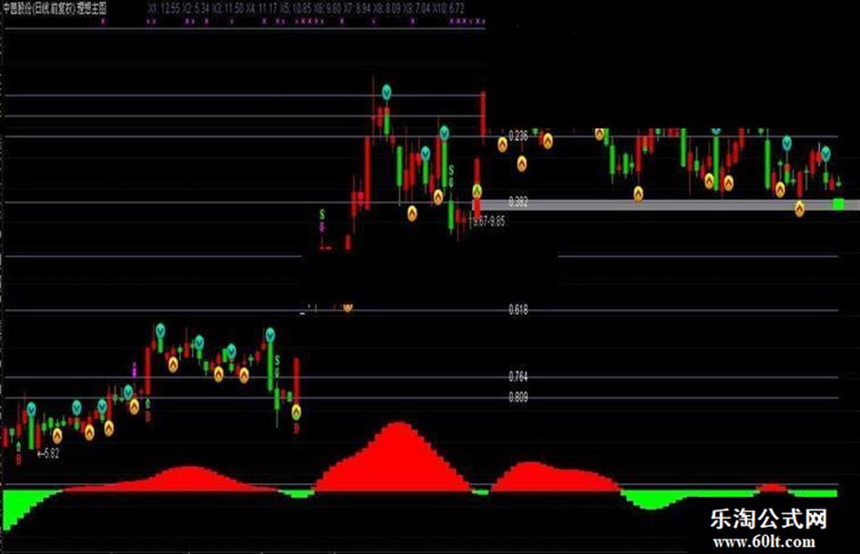 参考线:IF(CAPITAL=0 AND BC2>TC2 AND CURRBARSCOUNT<=INTPART(CB2+(TC2-CB2)*0.382) AND CURRBARSCOUNT>CB2,CB4,DRAWNULL);