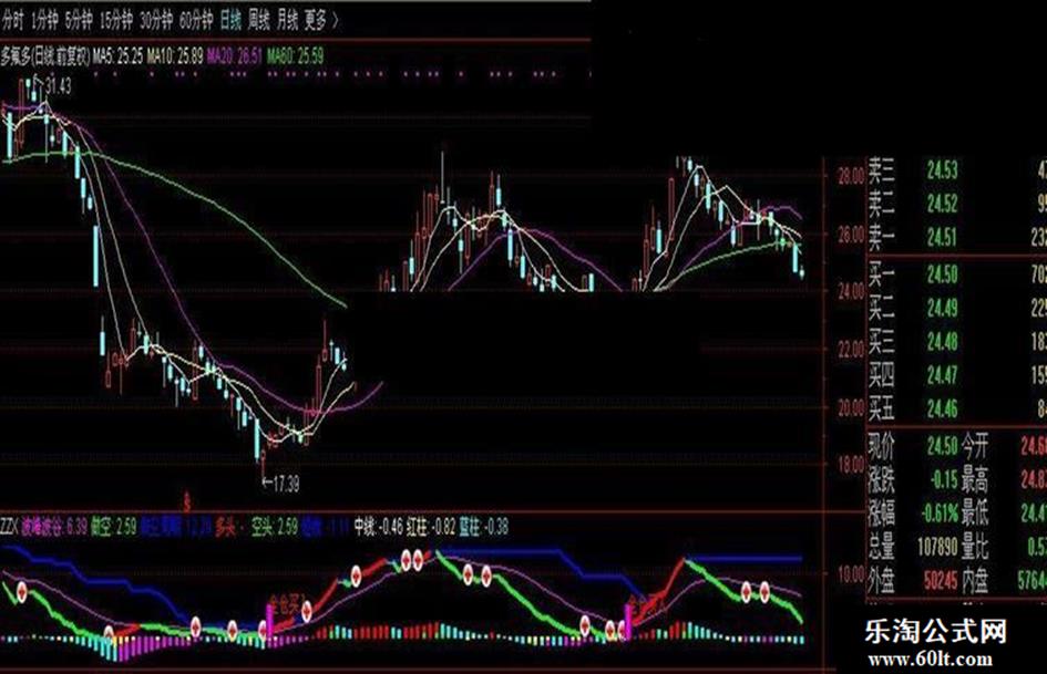 波峰波谷:SMA(拉升力A,3,1),COLORFF00FF;