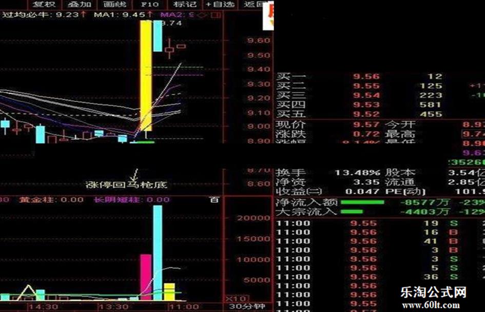 精准回马枪涨停主图 是抓涨停的利器。无未来放心使用。备用精准回马枪涨停选股指标可使用。