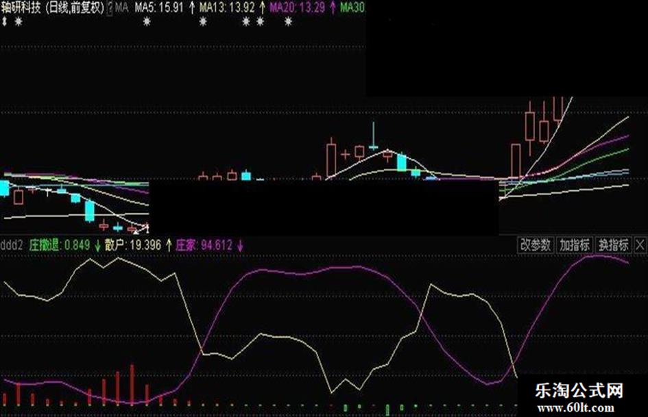 以前炒股,有个老师跟我说,跟着庄做才挣钱,后来我就找指标啊,各种找,后来找到一个,经过使用,还在用的一个显示庄散关系的指标,但是我其实就是看趋势 ,比较傻瓜的庄线上穿散线就买,相反卖,源码分享给大家,不是原创,在这谢谢原创老师,大家要是还有好用法就回帖提出来啦。