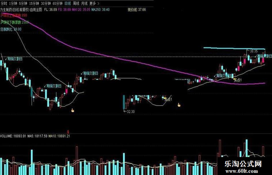 AND FS>MA(C,60) AND FL=FS AND REF(FL,1)>REF(FS,1) ,FS,'买入' ),COLORYELLOW;}