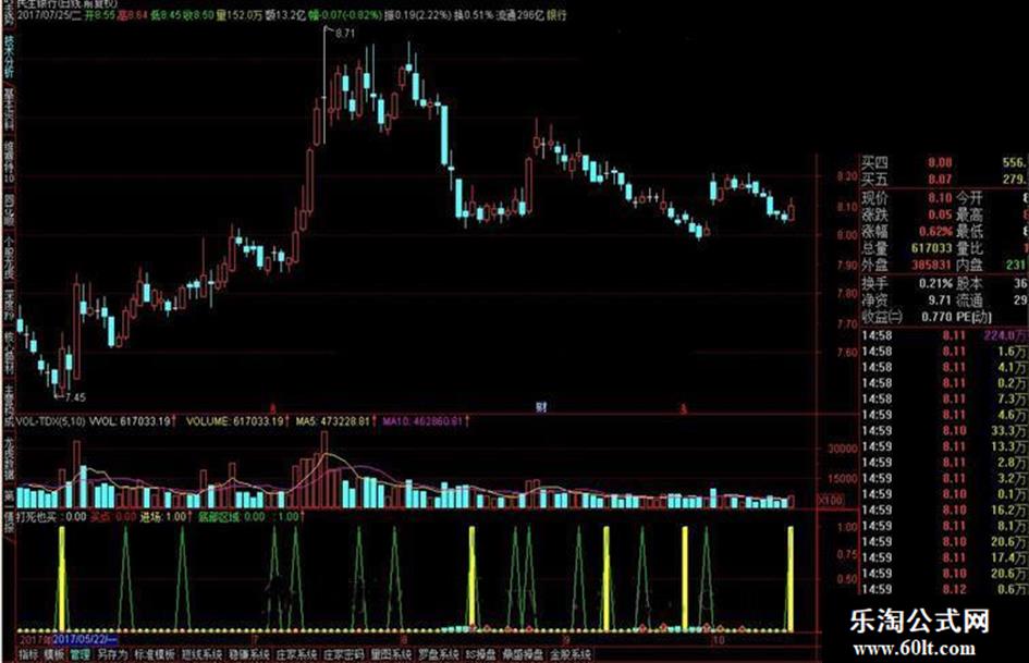 短线买点:=IF(SS>13,MA(SS,2),SS)/6;