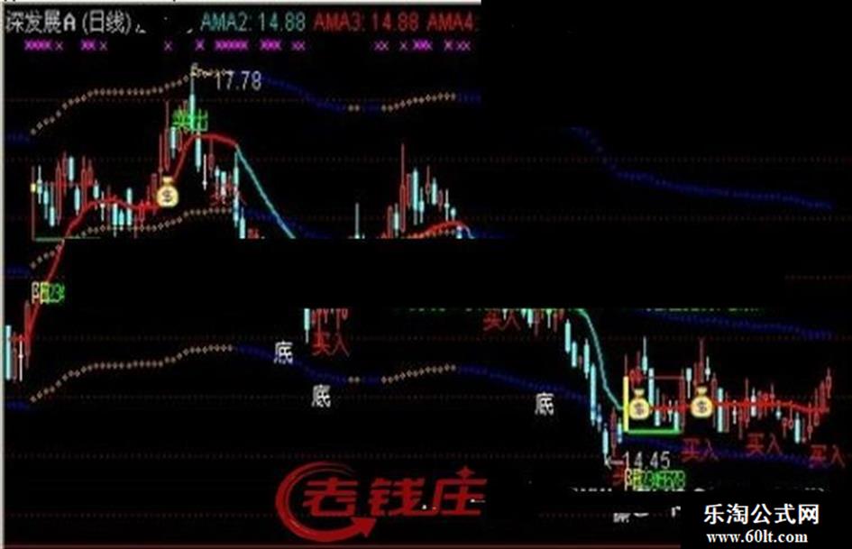 上升:=IF(红轨道>=绿轨道,绿轨道,DRAWNULL),COLORRED,LINETHICK2;