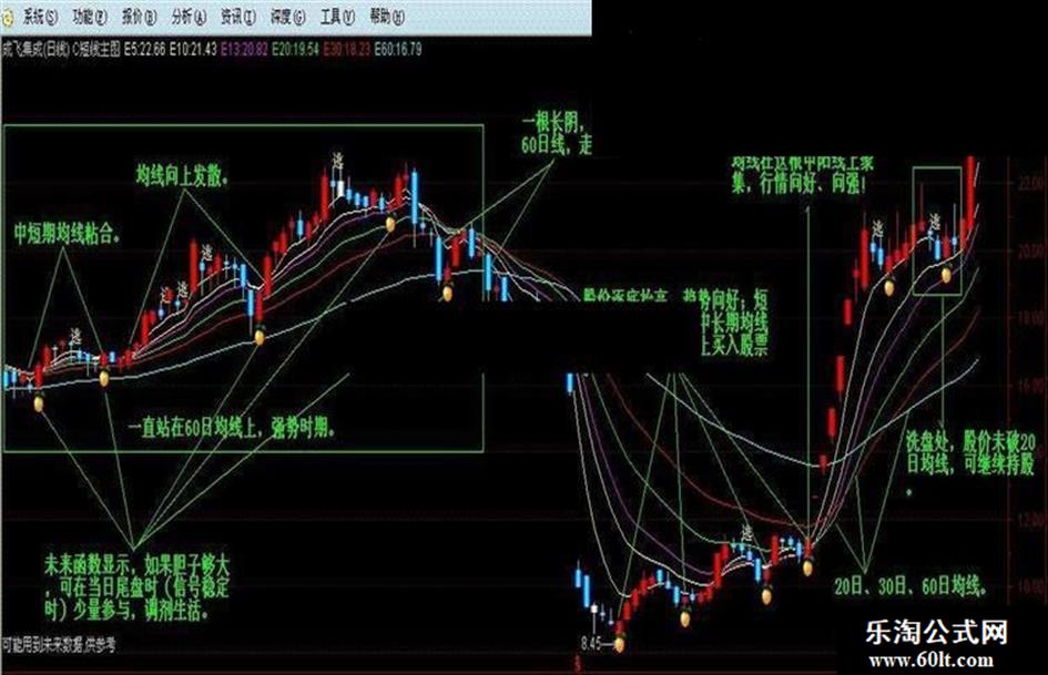 主图结合K线及短、中、长期均线,进行短中期买卖股票操作: