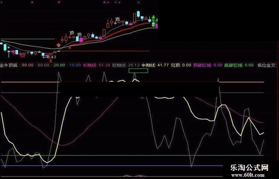顶部区域:(中期线<REF(中期线,1) AND REF(中期线,1)>80) AND (REF(短期线,1)>95 OR REF(短期线,2)>95 ) AND 长期线>60 AND 短期线<83.5