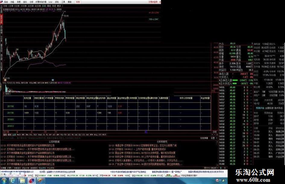 共享一个通达信的专业化数据公式,显示四个季度的机构持仓变化副图公式。