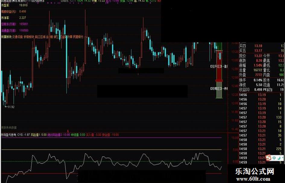 此指标是在系统市场盈亏指标的基础上加了几条线,判定买卖股票操作。