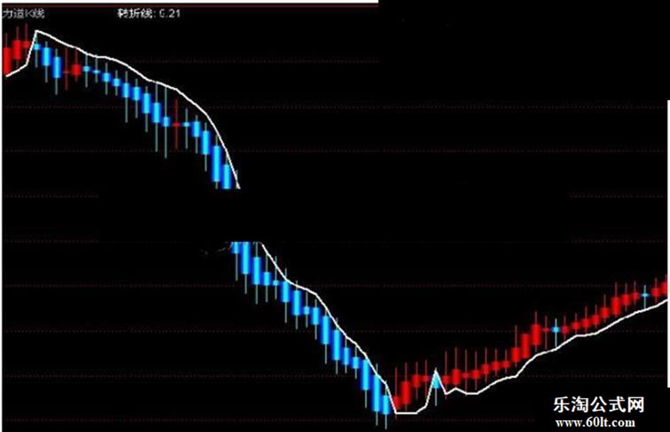 转折线:IF(A4=-1,MA(HIGH,6),MA(LOW,6))LINETHICK2,COLORFFFFFF;