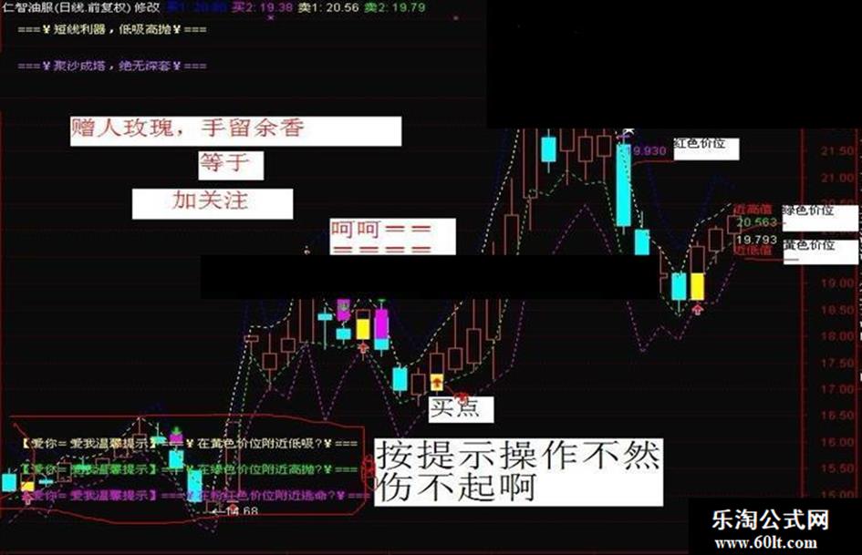 DRAWTEXT_FIX(CURRBARSCOUNT=1,0.02,0.8,0,'【爱你=爱我温馨提示】===¥在黄色价位附近低吸?¥==='),COLORYELLOW;