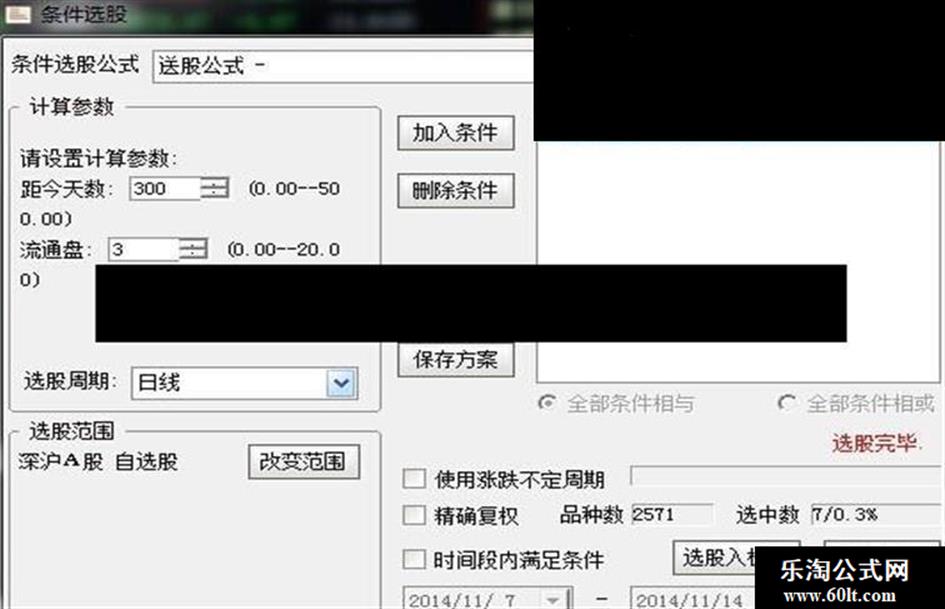选股时请去掉精确复权前面的勾,否则选不出股票哦