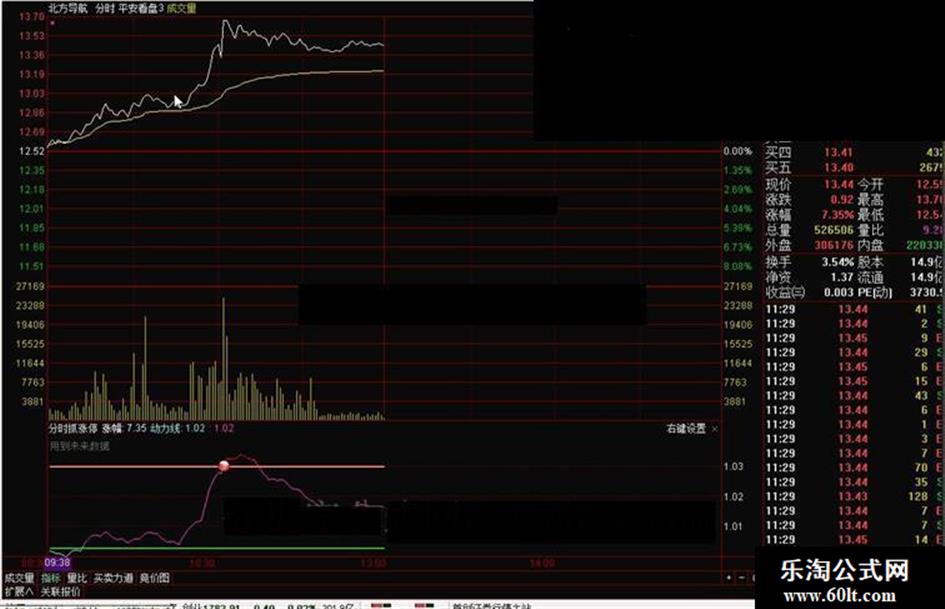 动力线:EXPMA((DCLOSE/TOU),13),COLORFFFF00,LINETHICK1;