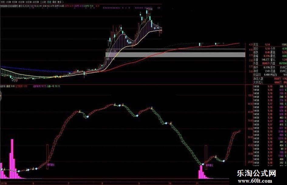 此副图很形象也很直观,升降趋势线就像一节节连起来的火车车厢(里面拉着钱哪 )。尤其下面零轴线处我加进了主力吸筹柱状信号,就像一堆燃烧正旺的火堆,火堆越旺火车就跑的越快,那么你的钱就来的越多......