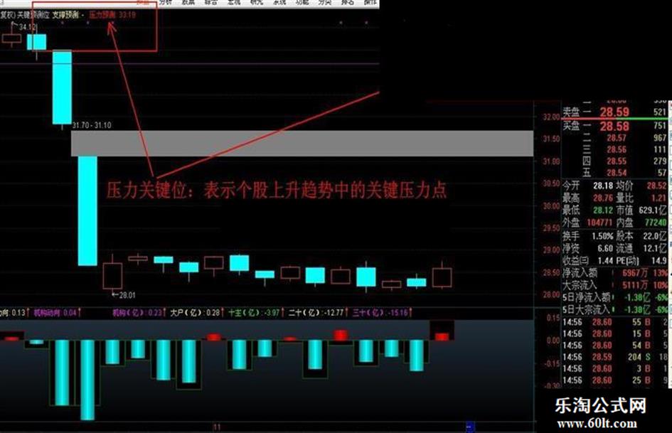 DRAWTEXT(ISLASTBAR,压力预测,STRCAT(' 【压力关键位】 ',STRCAT(CON2STR(压力预测,2),' 元'))),COLORFFFFFF,LINETHICK1;
