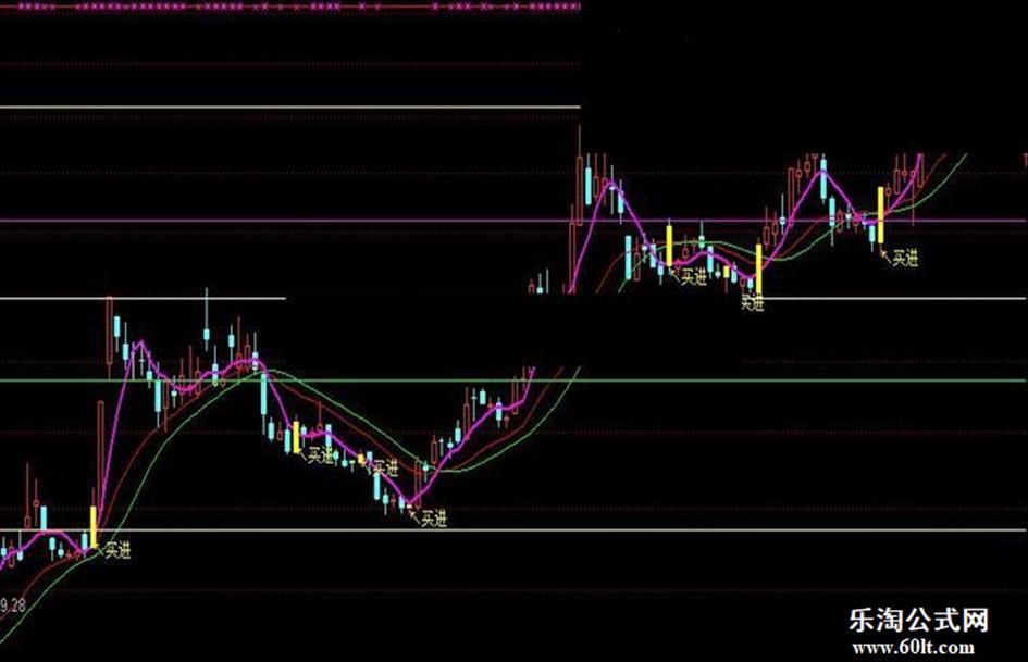 DRAWTEXT(FILTER(买=1,5),LOW-0.05,'↖买进'),COLORYELLOW;