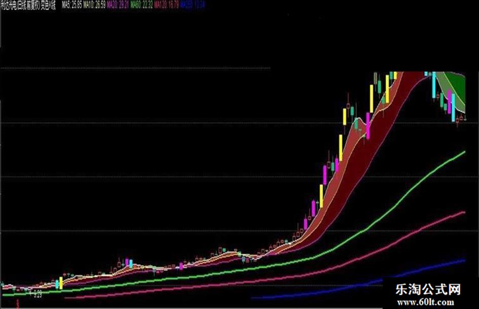 粉色大阳,青色大阴,黄色涨停,绿色跌停,中间红色假阴,中间绿色假阳