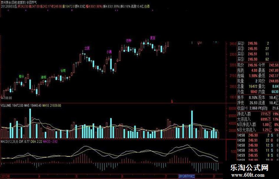 用法:廿四节气指标,来源码于网上,经过琪新简单编辑而成,用于观察大盘及个股随节气变化的规律,寻找可能的时间窗口,对个股的操作具有一定的参考意义,但由于个股主力的操盘手法不一,加之骗线等尔虞我诈行为,该指标有时可能反应不会灵敏,具体使用时还要参考其它指标综合判断为好
