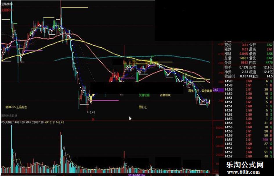 价值低点:IF(JTS>0,DRAWLINE(JC,L,REF(JC,1),REF(L,1),1),DRAWNULL),COLORMAGENTA,LINETHICK2;