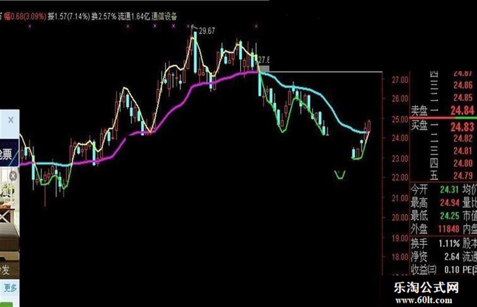 买卖线:DMA((2*CLOSE+LOW+HIGH)/4,AA),LINETHICK3,COLORMAGENTA;