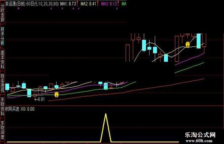 买点:=IF(CROSS(M18,M2),5,0* 10000),COLORFF00FF,LINETHICK2;