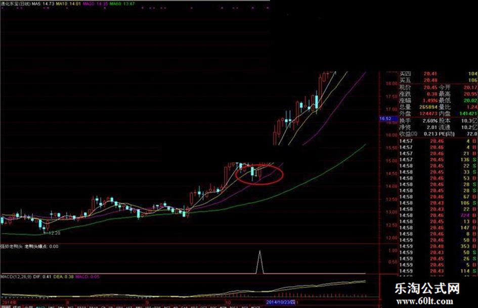 老鸭头爆点:WW AND COUNT((MA10>MA20),5)=5 AND WW1 AND RR;