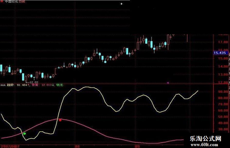 钱龙:DRAWTEXT((CROSS(背离,趋势)),背离,'●'),Color00FF00;