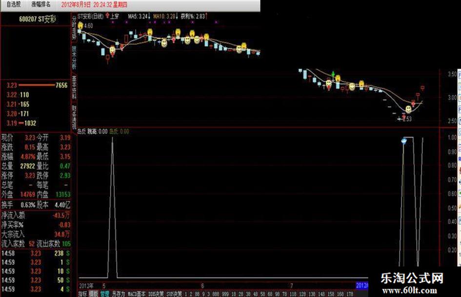 当满足条件净流>0时,在0和净流位置之间画柱状线,宽度为1.5,0不为0则画空心柱.,COLOR0000FF