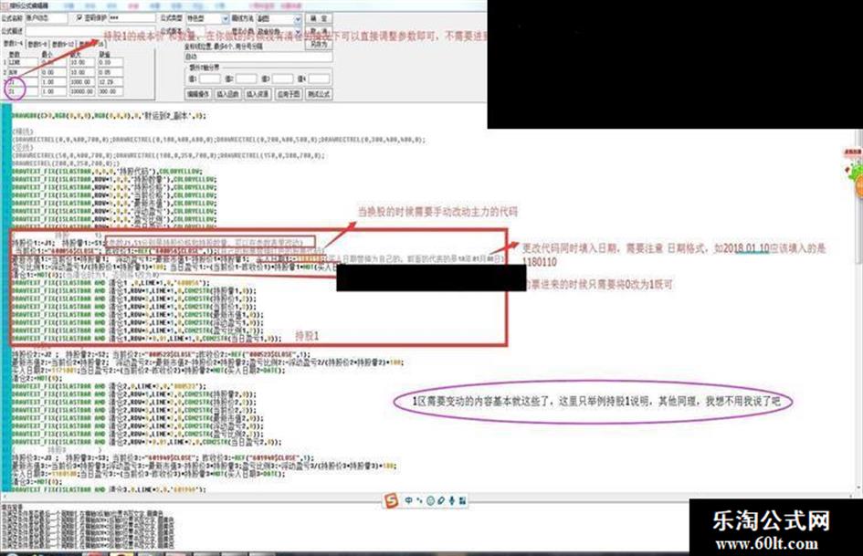 持股价1:=J1; 持股量1:=S1;{参数J1,S1分别是持股价格和持股数量,可以在参数表里改动}