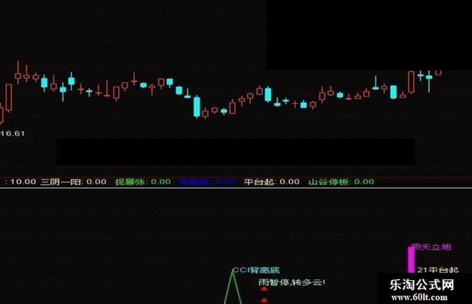背离底:IF(LAST(MA(C,5)<MA(C,10),5,0) AND "CCI.CCI">REF("CCI.CCI",1) AND CROSS("CCI.CCI",-100),3,0);