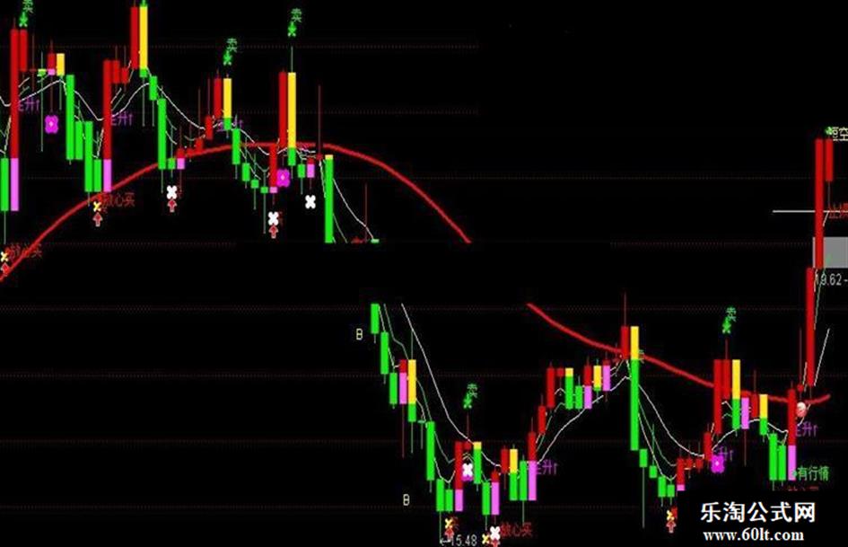 红买绿卖:IF(CROSS(BB,买1B),LOW*0.99,DRAWNULL),CROSSDOT,LINETHICK5,COLORWHITE;