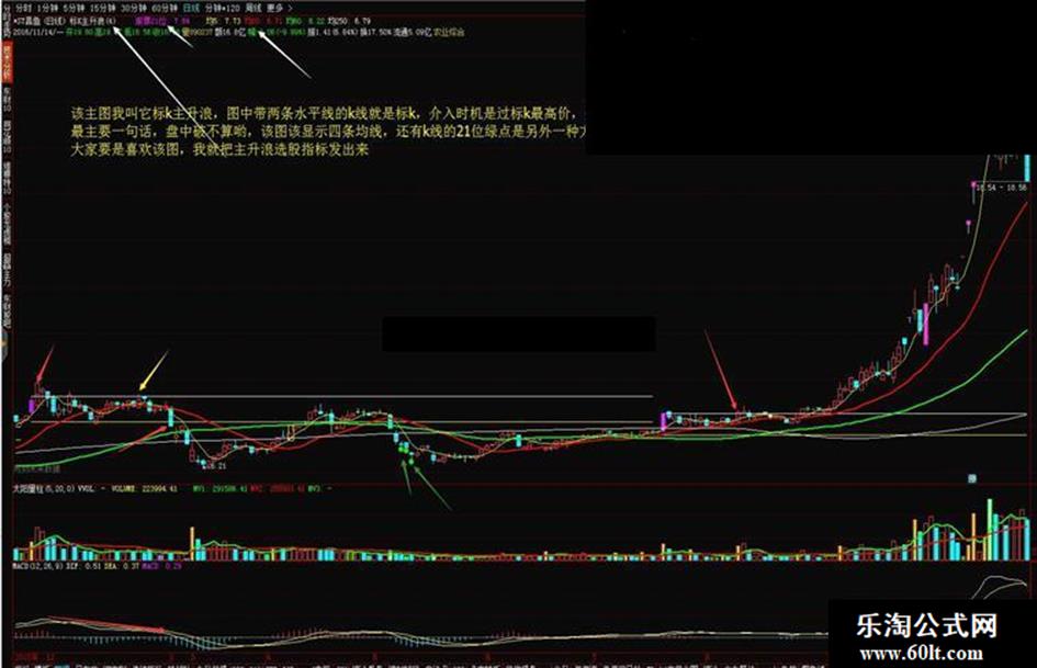 先上图,该主图是我结合量学及传统指标做出来的,我叫它是标k主升浪,该主图由于划线和k线变色,所以有未来函数,其实该主图实际没有未来函数的,由于我是小白,经过一年多才弄出来的,故加密了,不喜欢的不要喷