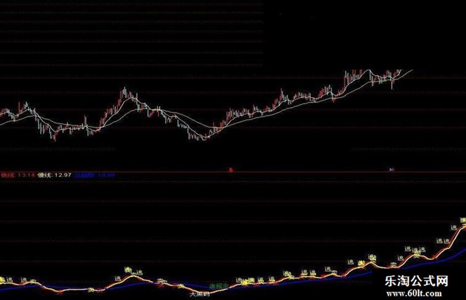 总趋势:EMA(EMA(EMA(EMA(EMA(CLOSE,65),3),3),3),3),LINETHICK2,COLORBLUE;