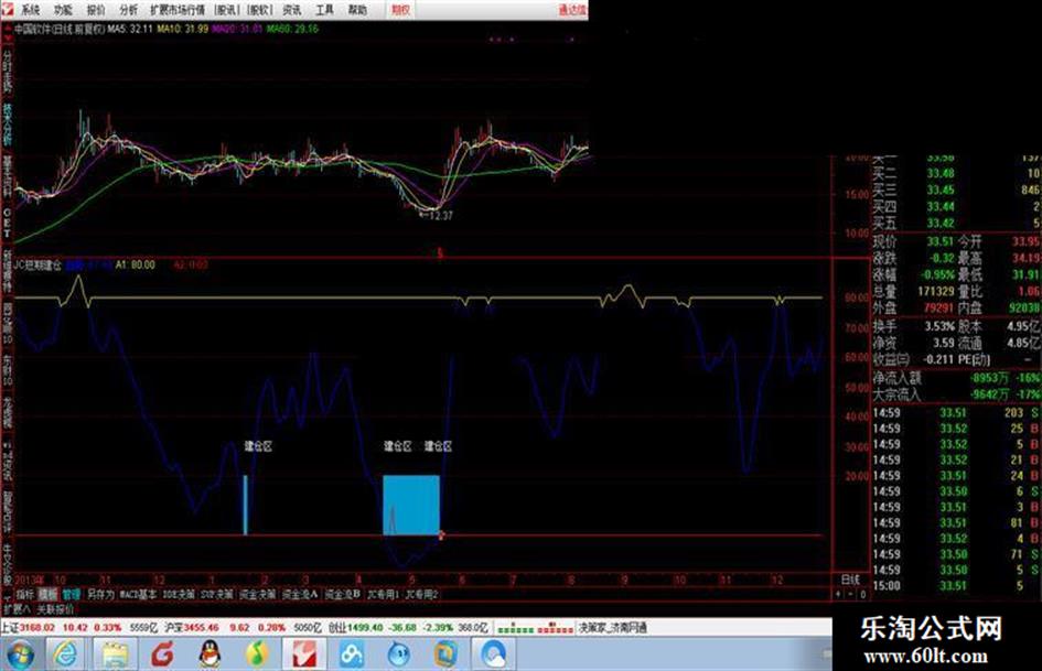 DRAWTEXT(FILTER(趋势<=4,15),30,'建仓区'),COLORWHITE;