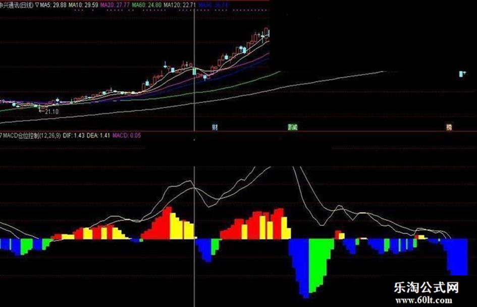 红色买入,黄色卖出,蓝色止损,绿色空仓