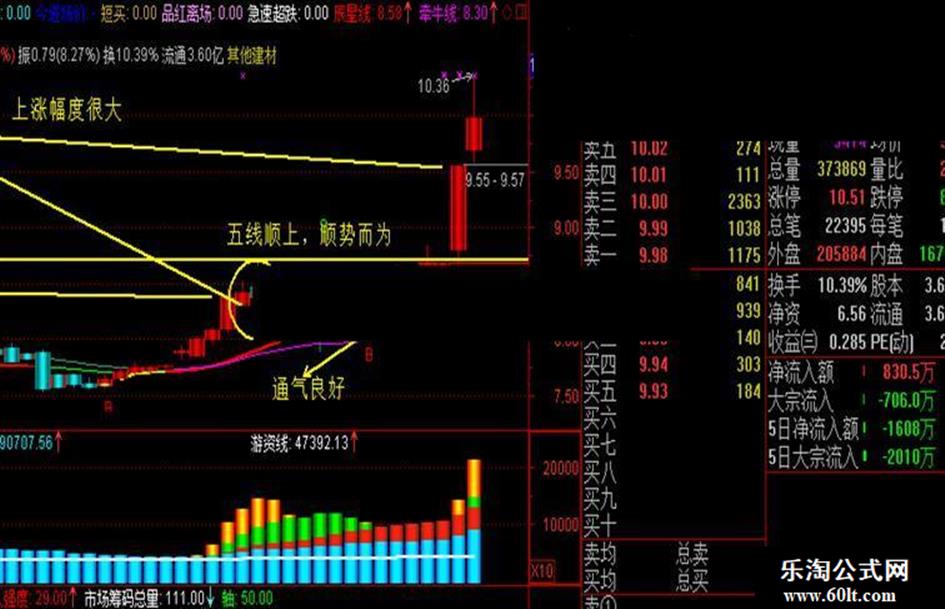 游资参与比例:=ROUND(((游资 / (((主力 + 游资) + 大户) + 散户)) * 100)),NODRAW,COLOR00FF00;